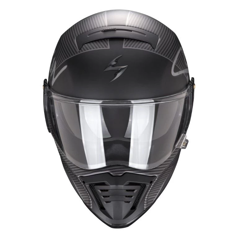 Scorpion heeft een microbuckle kinbandsluiting gekozen voor een stevige maar ook goed te openen sluiting. Voor de ventilatie van de helm is gebruik gemaakt van een openingen op de kin en de bovenkant van de helm en heeft de helm een actief ventilatiekanaal om lucht ook weer makkelijk af te voeren.