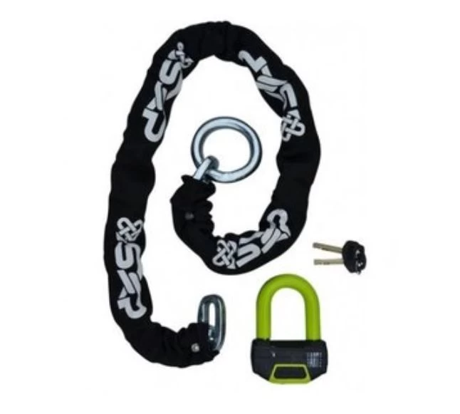 ART4 goedgekeurd kettingslot van 120 centimeter. Voorzien van een lus aan het uiteinde, waar het bijgeleverde remschijfslot aan gemonteerd kan worden.